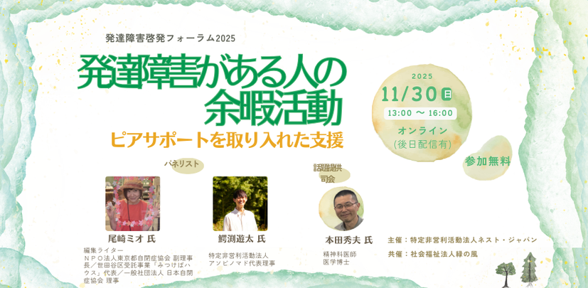 ネスト・ジャパンでは、2019年より社会福祉法人緑の風の共催で「発達障害啓発フォーラム」を開催しております。